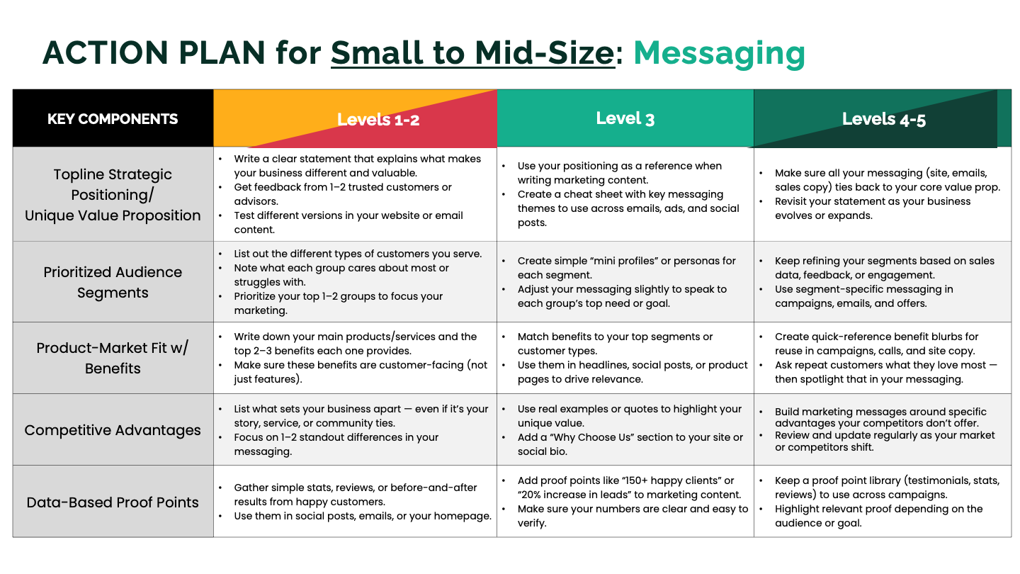 Use this quick self-assessment to identify strengths, gaps, and opportunities in your brand positioning and messaging. It’s designed to give you clarity fast — no fluff, just focus.
